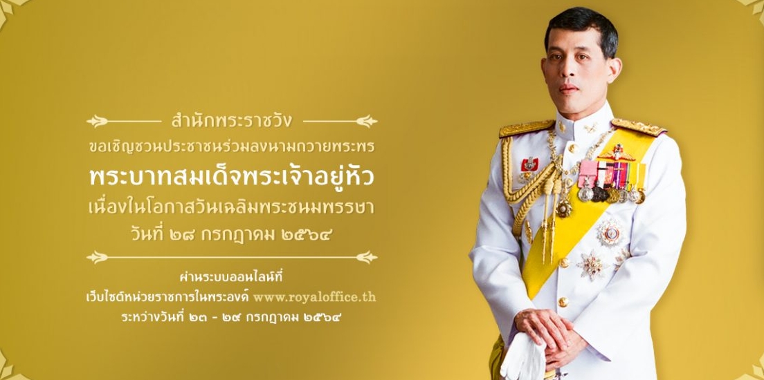 แขวงทางหลวงชุมพร ขอเชิญชวนประชาชนร่วมลงนามถวายพระพร พระบาทสมเด็จพระเจ้าอยู่หัว เนื่องในโอกาสวันเฉลิมพระชนมพรรษา วันที่ ๒๘ กรกฎาคม ๒๕๖๔ ผ่านระบบออนไลน์