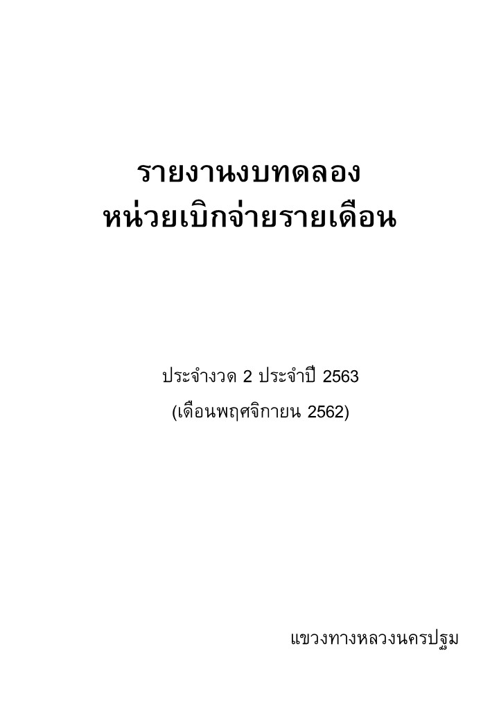 งบทดลอง ประจำเดือนพฤศจิกายน 2562 |