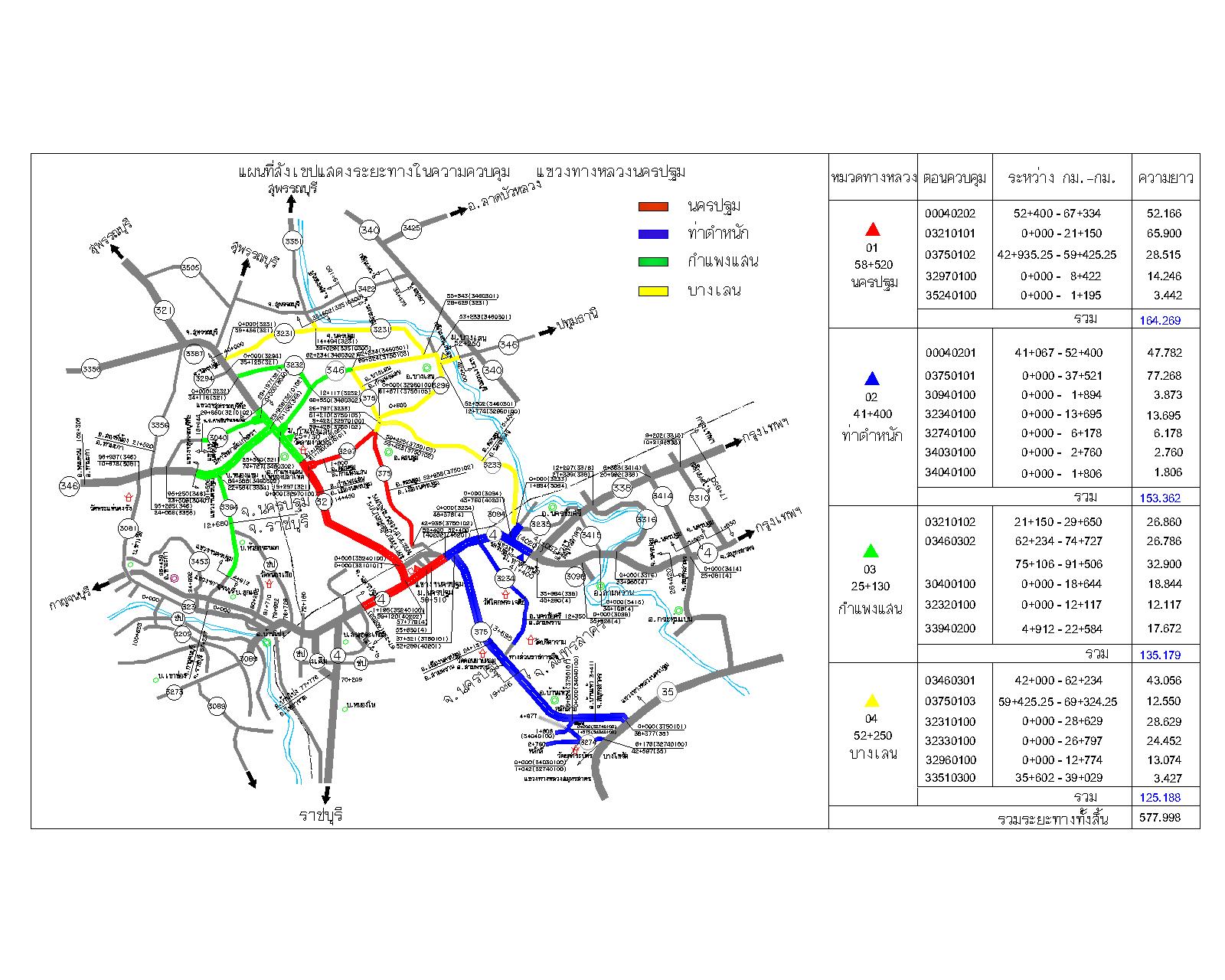 แผนที่สังเขปแสดงระยะทางในความควบคุม แยกตามผิวจราจร