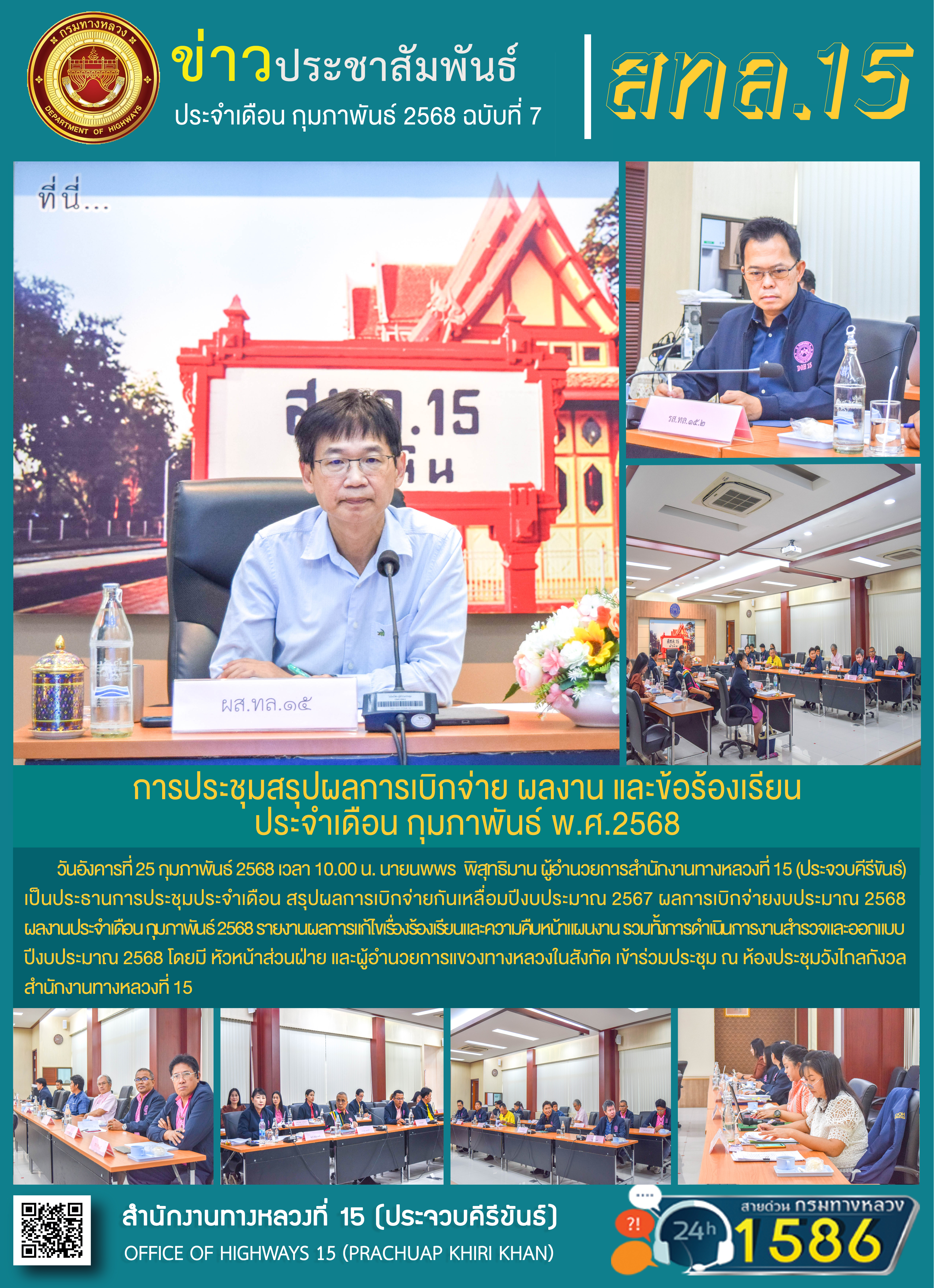 รายงานผลการดำเนินงานตามแผนปฏิบัติการส่งเสริมคุณธรรมจริยธรรมของสำนักงานทางหลวงที่ 15 ประจำปีงบประมาณ พ.ศ.2568