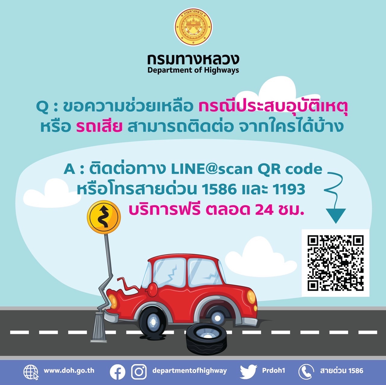 วิสัยทัศน์ : ระบบทางหลวงที่สะดวกปลอดภัย เชื่อมโยงการพัฒนาโครงสร้างพื้นฐานของประเทศ