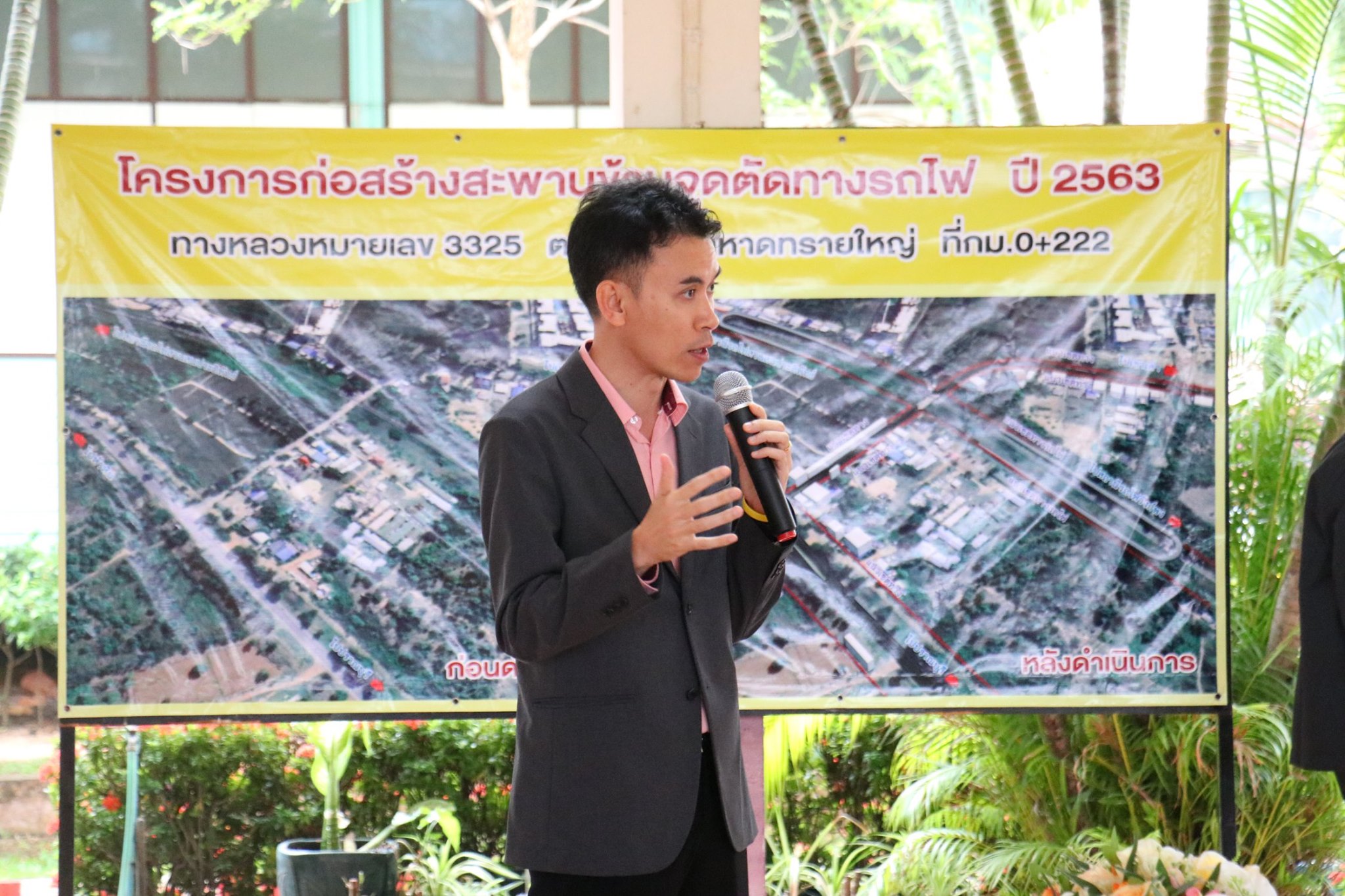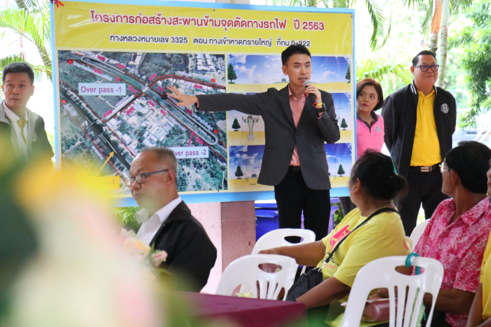 นายนรงฤทธิ์ พรหมประดิษฐ์ ผู้อำนวยการแขวงทางหลวงฯ ,นายเศรษฐ์ จันทอาด รองผู้อำนวยการแขวงทางหลวงฯ ,นายอนุสรณ์ ผาใต้ หัวหน้าหมวดทางหลวงหัวหิน ,นายชัชชัย พงษ์พิทักษ์ ผู้แทนสำนักก่อสร้างสะพาน ,ผู้แทนสำนักสำรวจและออกแบบ ได้ดำเนินการจัดโครงการ การมีส่วนร่วมของประชาชน สำหรับโครงการก่อสร้างสะพานข้ามจุดตัดทางรถไฟ ทางหลวงหมายเลข 3325 ตอน ทางเข้าหาดทรายใหญ่ ที่กม.0+222 ซึ่งได้เชิญผู้นำชุมชน ,ผู้แทนหน่วยงานรัฐและเอกชน ,ประชาชนในพื้นที่ เข้าร่วมรับฟังรูปแบบและการดำเนินงานก่อสร้าง ดังกล่าว โดยมี นายธนนท์ พรรพีภาส นายอำเภอหัวหิน เป็นประธาน ณ อาคารอเนกประสงค์ โรงเรียนเทศบาลบ้านเขาเต่า ต.หนองแก อ.หัวหิน จ.ประจวบคีรีขันธ์