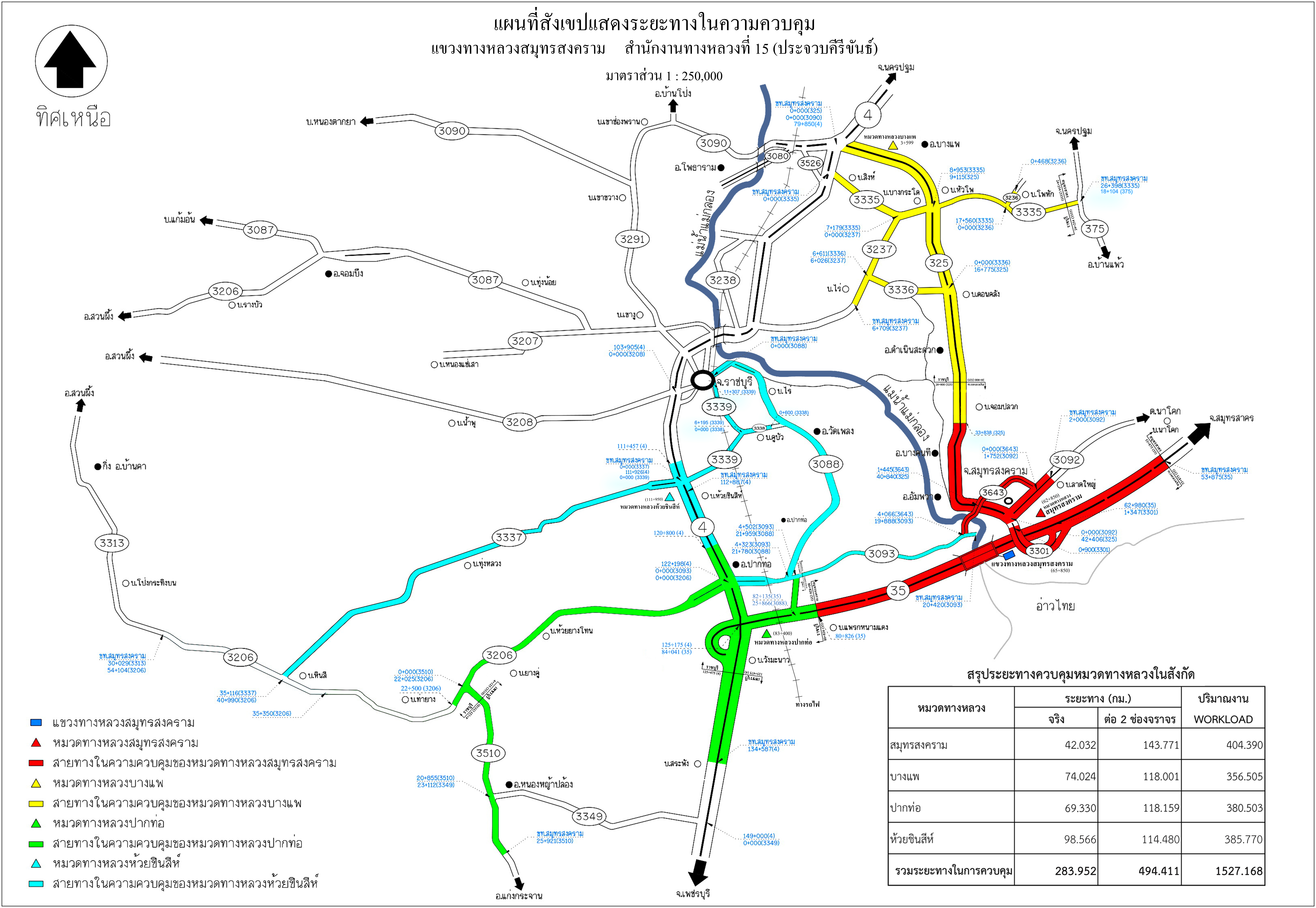 ตารางเส้นทางระยะทางควบคุม แขวงทางหลวงสมุทรสงคราม